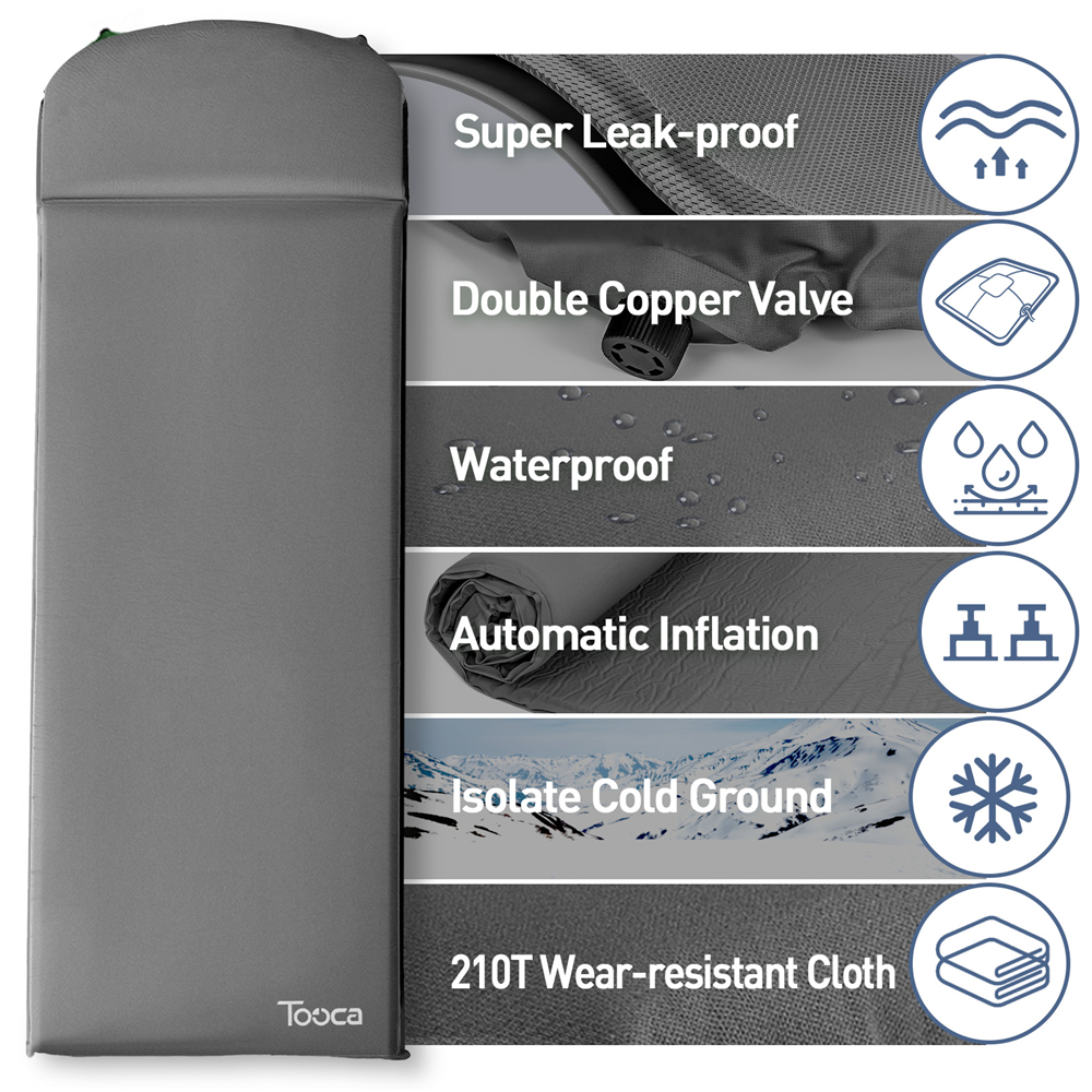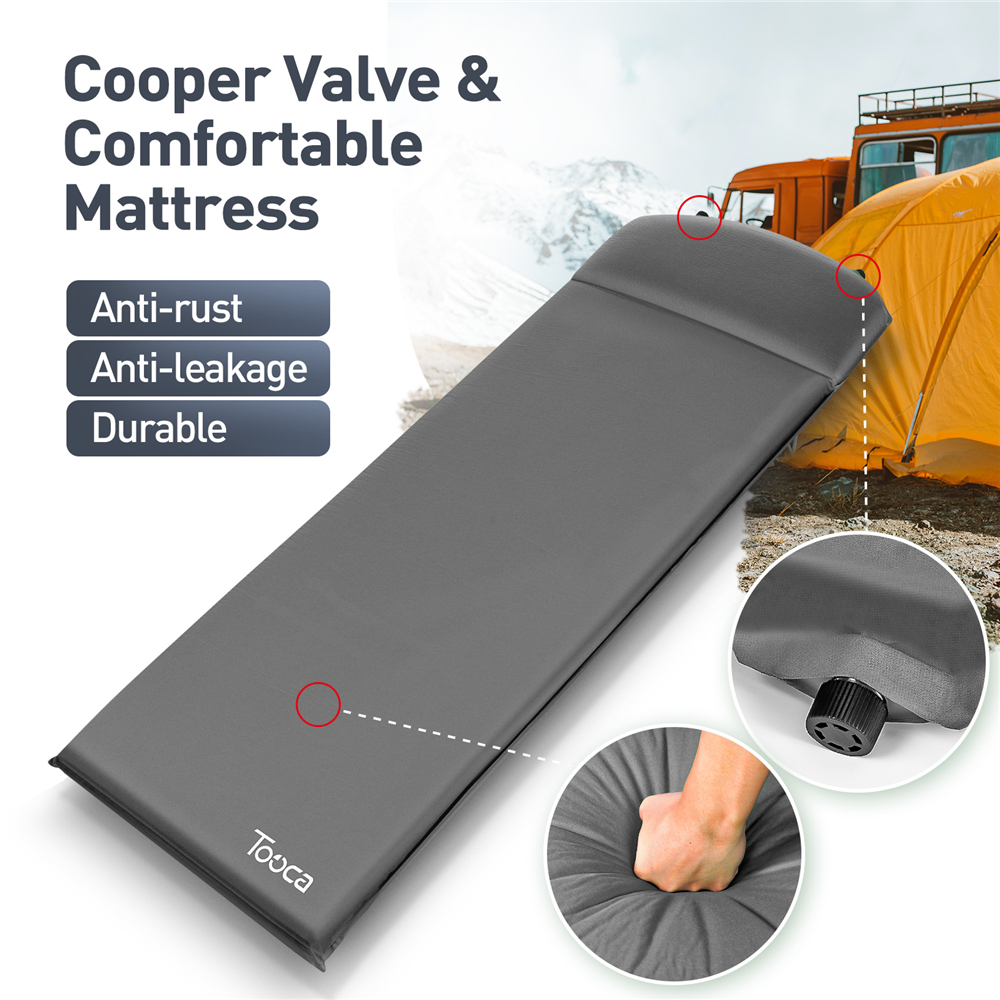 You only need to unscrew the two air nozzles, and the camping mat will automatically inflate. The fast inflating design makes the foam sleeping mat very convenient and quick to use, and no longer need to be strenuous. With anti-leakage system, the sleeping mattress will not easily collapse.