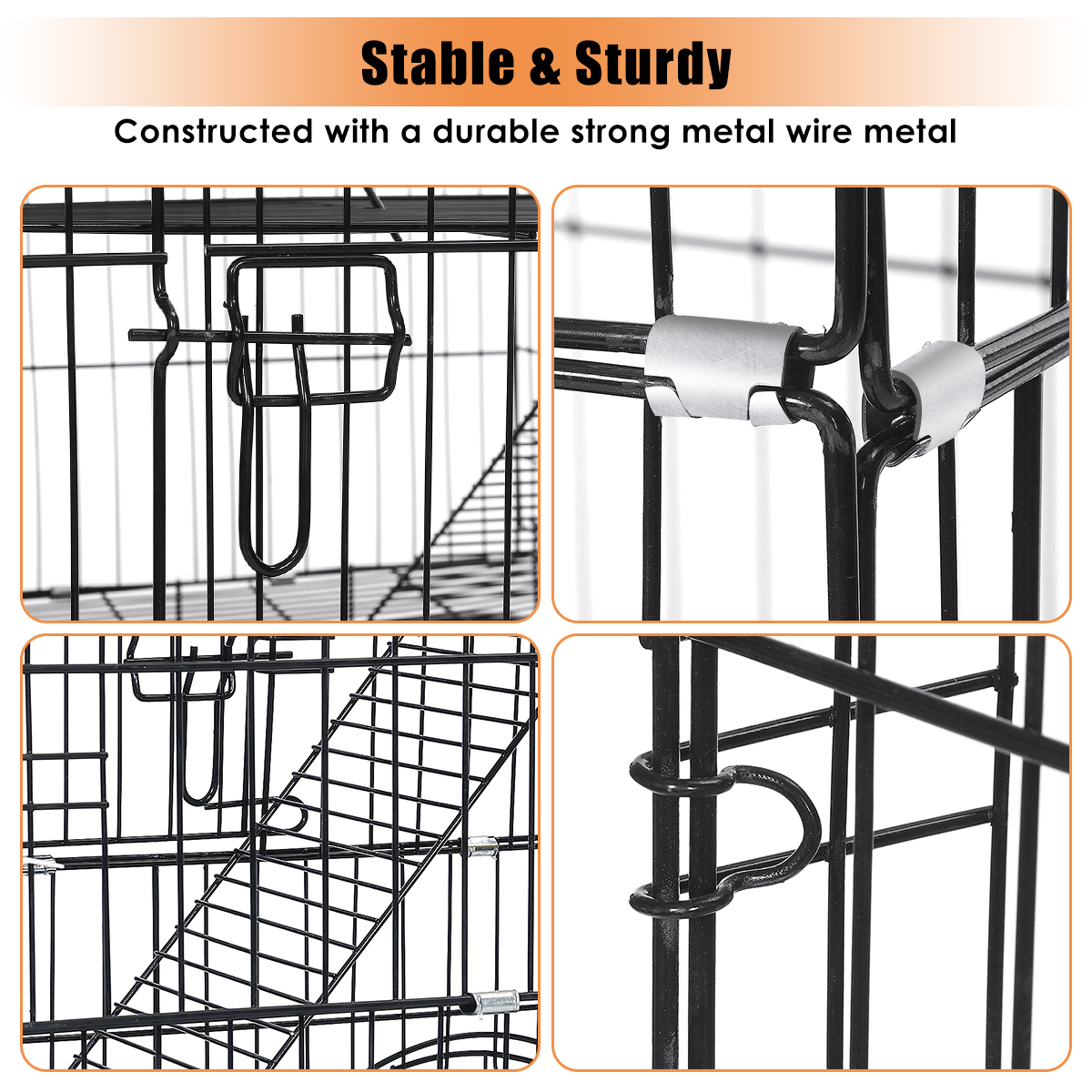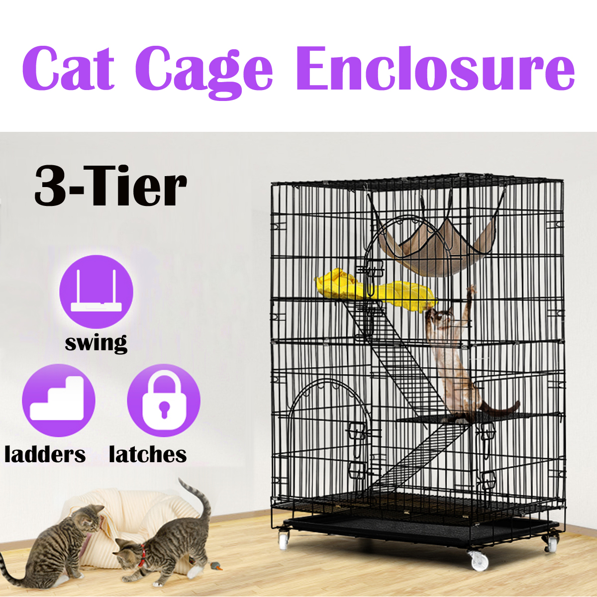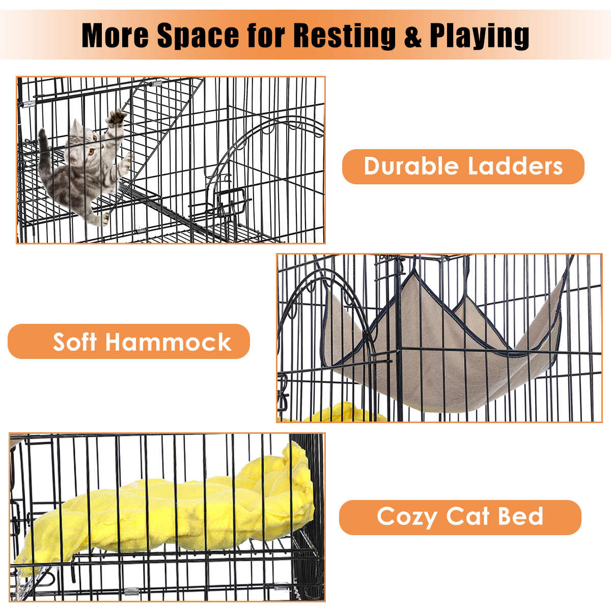 3-Tier Cat Cage, Cat Playpen Kennel Crate Chinchilla Rat Box Cage Enclosure with Ladders, Platforms Beds, Latches Tray Hammock