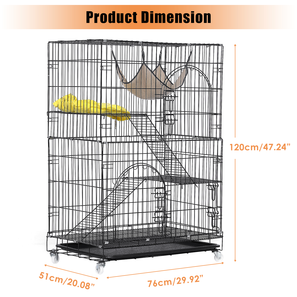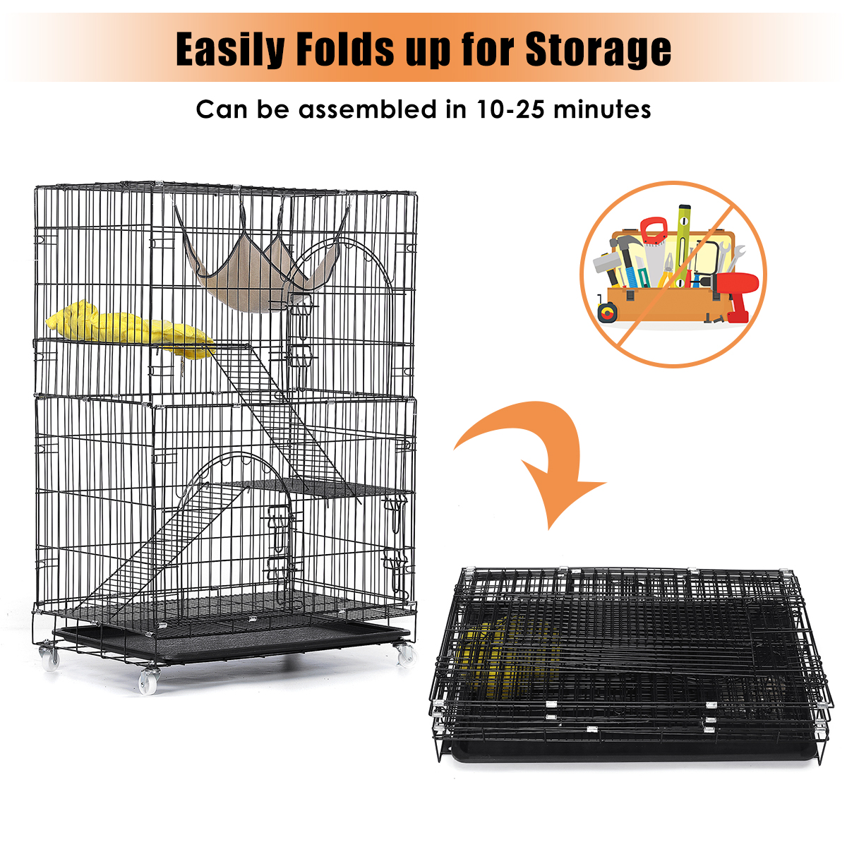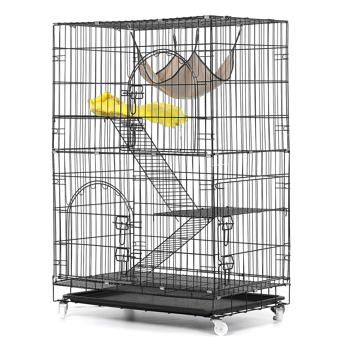 3-Tier Cat Cage, Cat Playpen Kennel Crate Chinchilla Rat Box Cage Enclosure with Ladders, Platforms Beds, Latches Tray Hammock