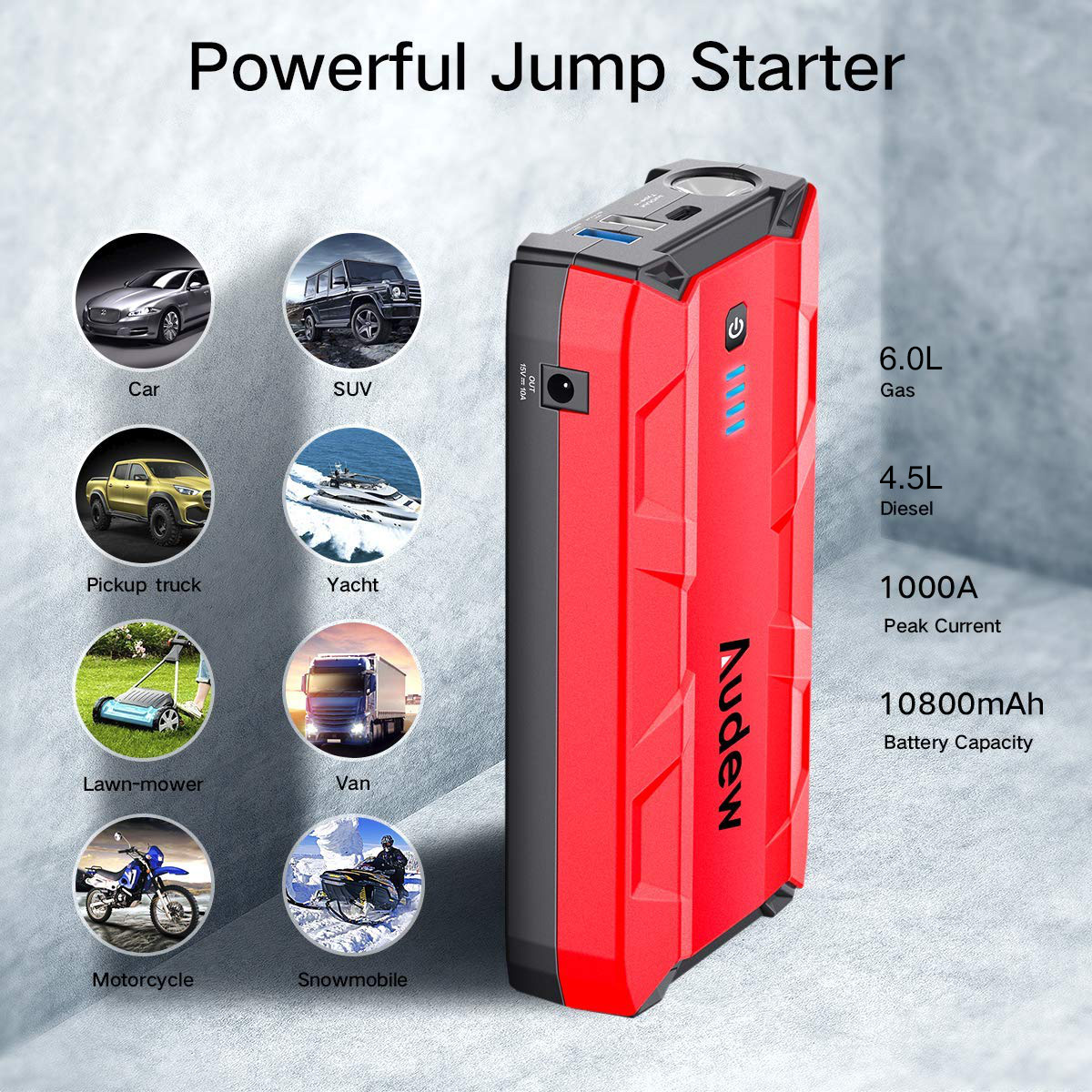 Audew 10800mAh Peak Current 1000A Car Jump Starter, Charge Vehicle Up To 8.0L Gas or 7.0L Diesel
