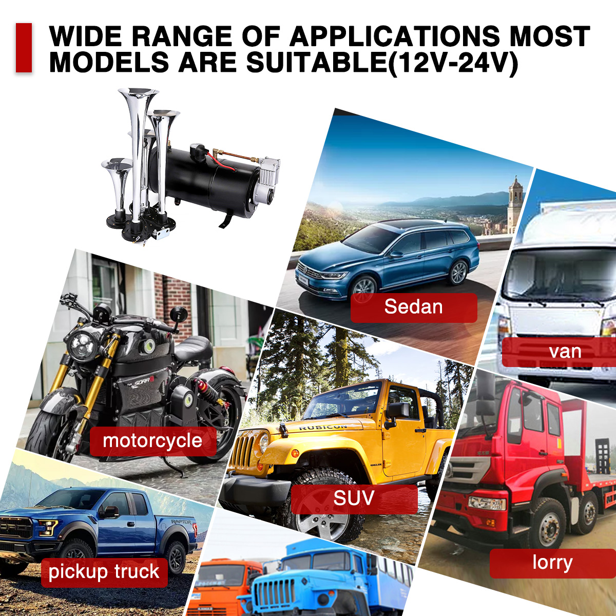 COMPLETE PACKAGE- The horn kit includes basic mounting hardware, hose, and other devices. So you don't need to worry about buying hardware or other accessories for installation.