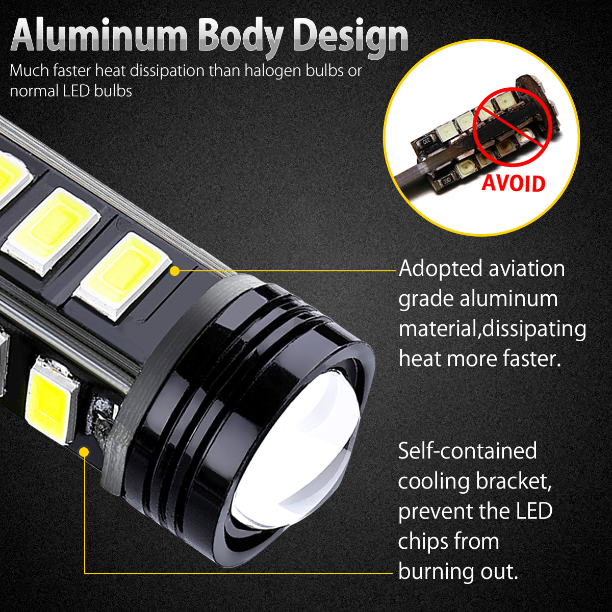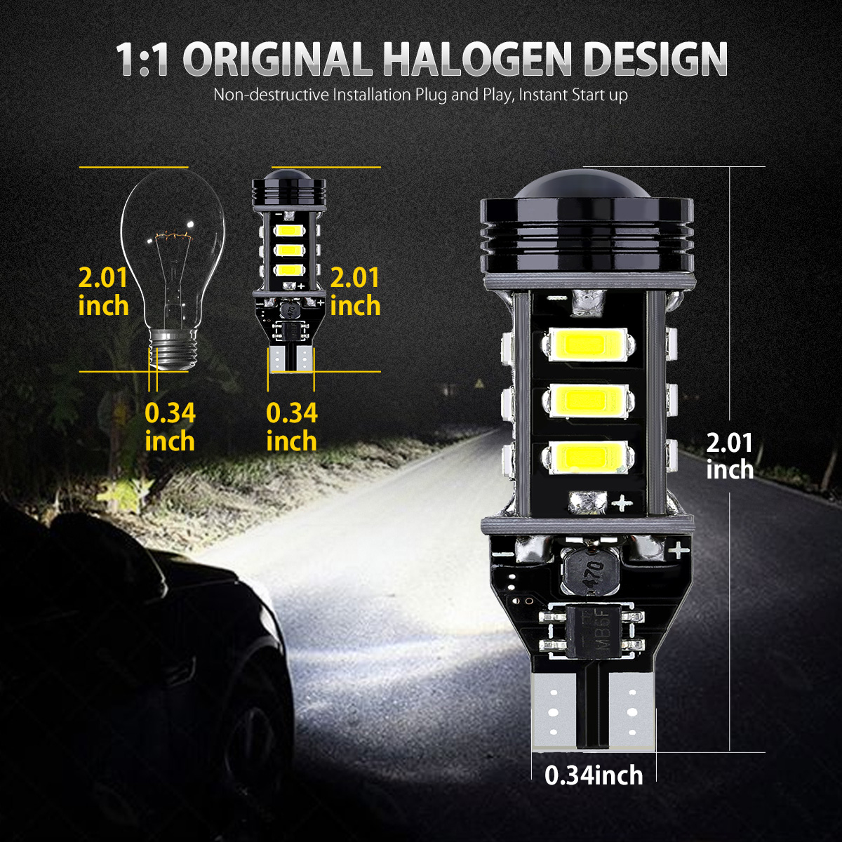 Audew 2pc. 12-24V T15 W16W LED Bulbs 7000K Pure White Backup Car Reverse Lights with Projector Lens