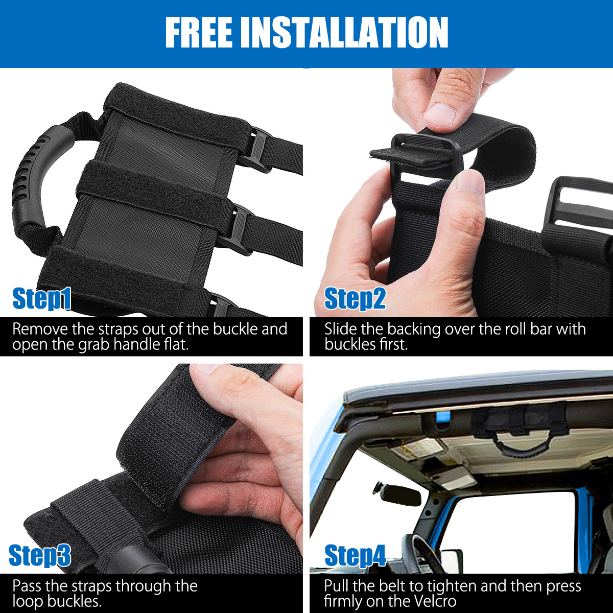 Audew 4Pc. Car Grab Handles For Driving on Harsh Road, For Any Off-road Vehicle Roll Bar