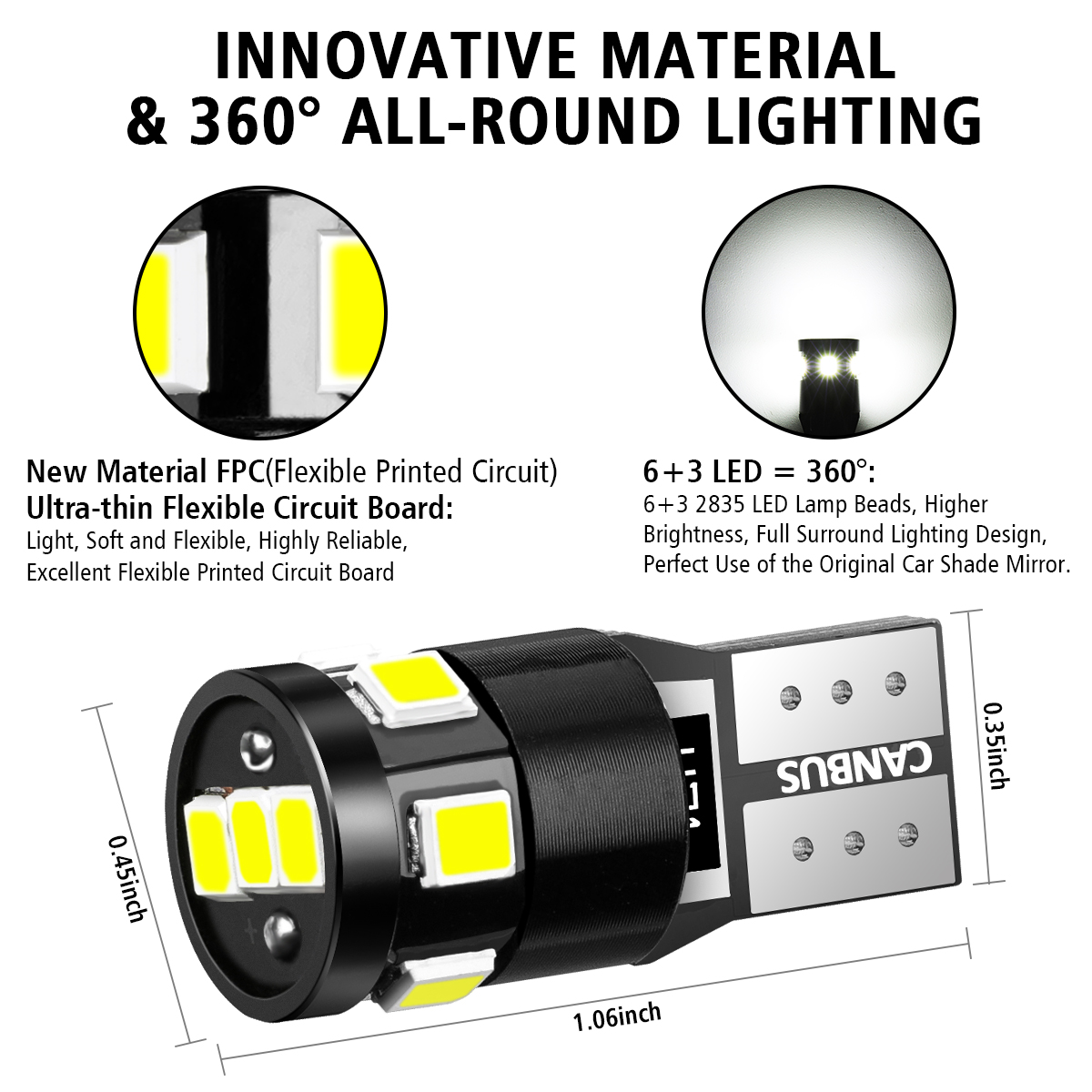 Audew 10 pcs T10 LED Bulb 6000K Super Bright 194 168 W5W LED Light Bulb for Vehicles