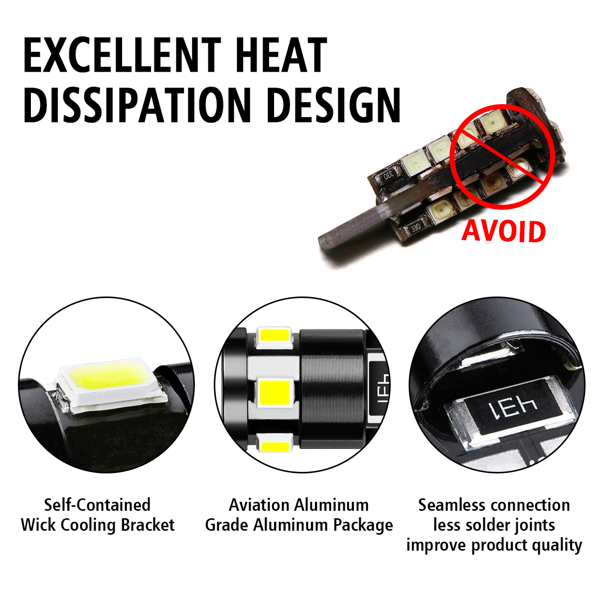 Audew Car LED Bulbs 10pc. T10 194 168 W5W 6000K White Super Bright Universal for Vehicles Dome/Map/Parking/Marker/License Plate Light