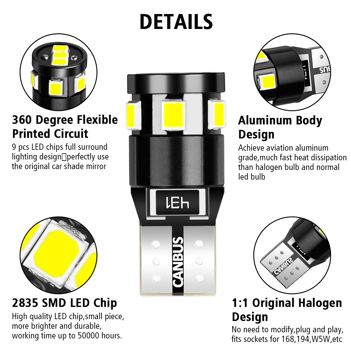 Audew 10 pcs T10 LED Bulb 6000K Super Bright 194 168 W5W LED Light Bulb for VehiclesAudew 10 pcs T10 LED Bulb 6000K Super Bright 194 168 W5W LED Light Bulb for VehiclesAudew 10 pcs T10 LED Bulb 6000K Super Bright 194 168 W5W LED Light Bulb for Vehicles