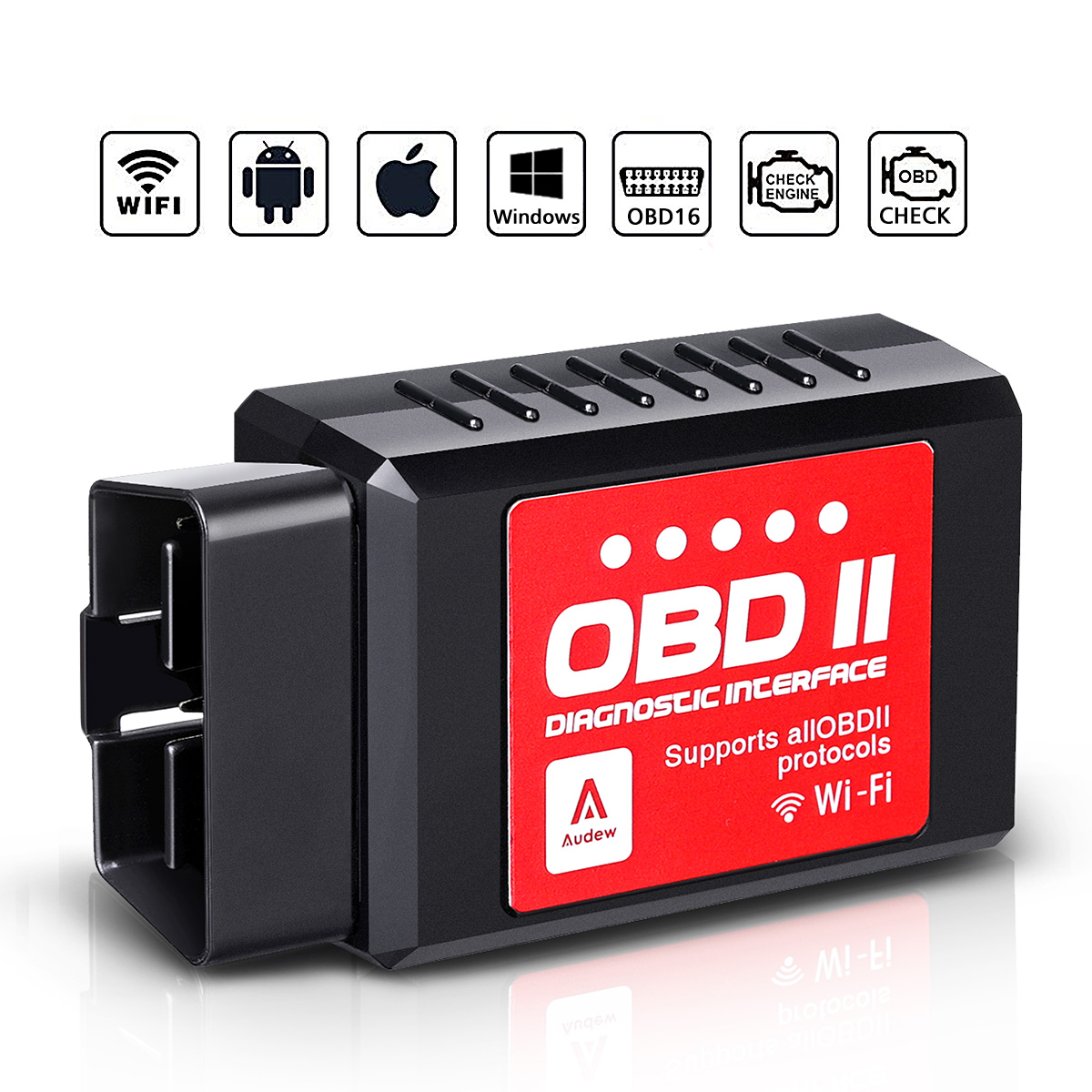Audew 9V-16V 65mA Car WiFi OBDII Reader/ScannerAudew Car WiFi OBDII Diagnostic Scanner Code Reader Fits iOS/Android/Windows Devices, 9V-16V 65mA